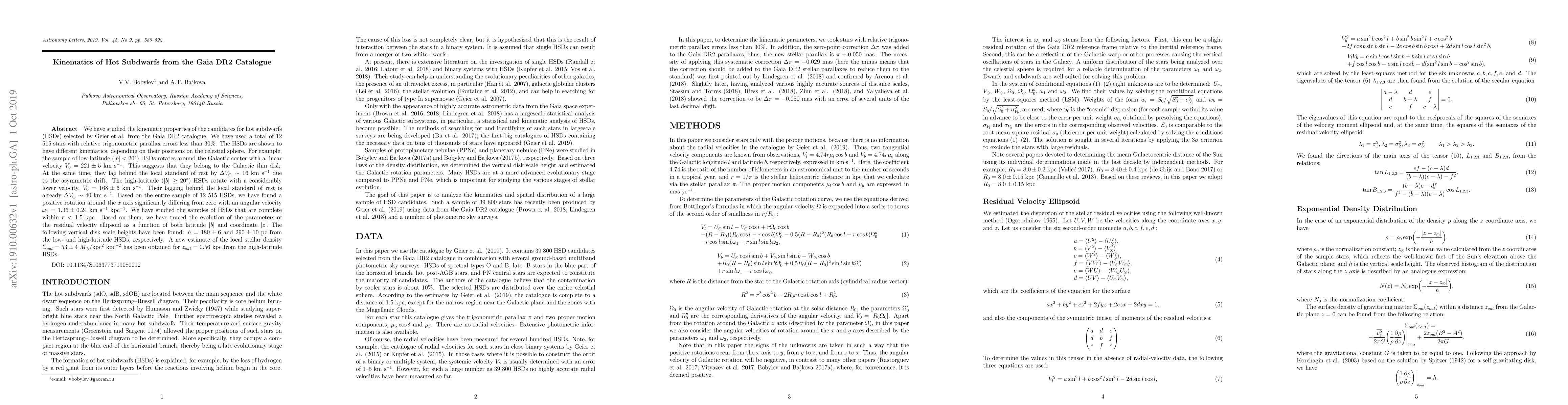 A study of 12,515 hot subdwarf stars found they rotate around the Galactic center with varying velocities depending on their latitude, suggesting different kinematic properties for low-latitude and high-latitude stars.
