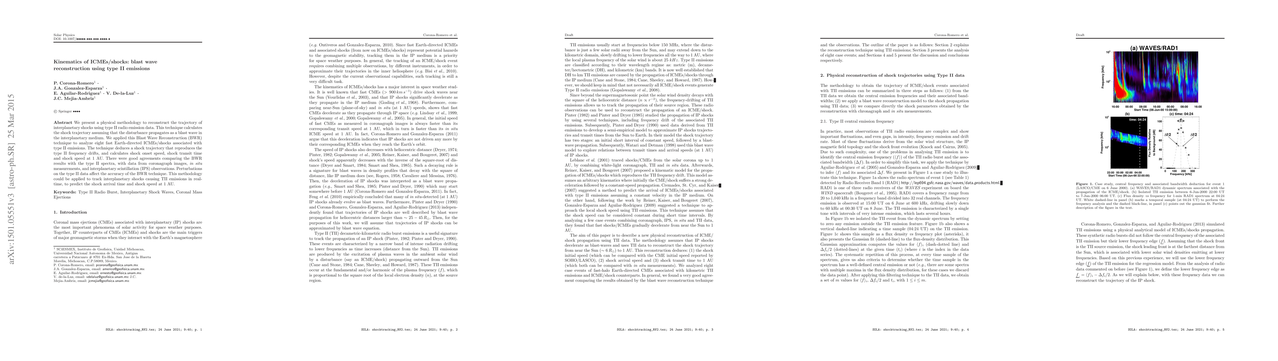 A new technique called Blast Wave Reconstruction uses type II radio emissions to track interplanetary shocks, accurately predicting arrival time and speed.