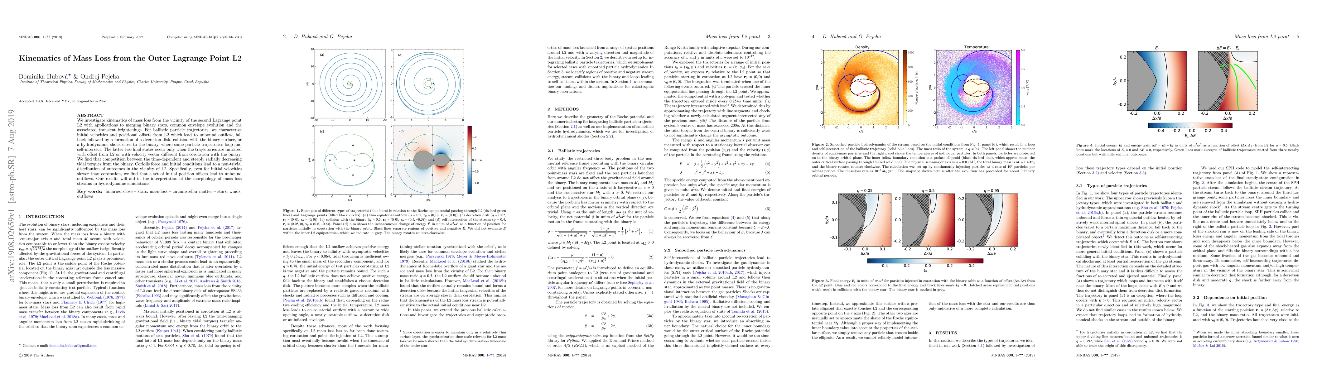 We investigate kinematics of mass loss from the vicinity of the second Lagrange point L2 with applications to merging binary stars, common envelope evolution and the associated transient brightenings. For ballistic particle trajectories, we characterize initial velocities and positional offsets from L2 which lead to unbound outflow, fall back followed by a formation of a decretion disk, collision with the binary surface, or a hydrodynamic shock close to the binary, where some particle trajectories loop and self-intersect. The latter two final states occur only when the trajectories are initiated with offset from L2 or with velocity vector different from corotation with the binary. We find that competition between the time-dependent and steeply radially decreasing tidal torques from the binary, Coriolis force and initial conditions lead to a non-trivial distribution of outcomes in the vicinity of L2. Specifically, even for initial velocities slower than corotation, we find that a set of initial position offsets lead to unbound outflows. Our results will aid in the interpretation of the morphology of mass loss streams in hydrodynamic simulations.