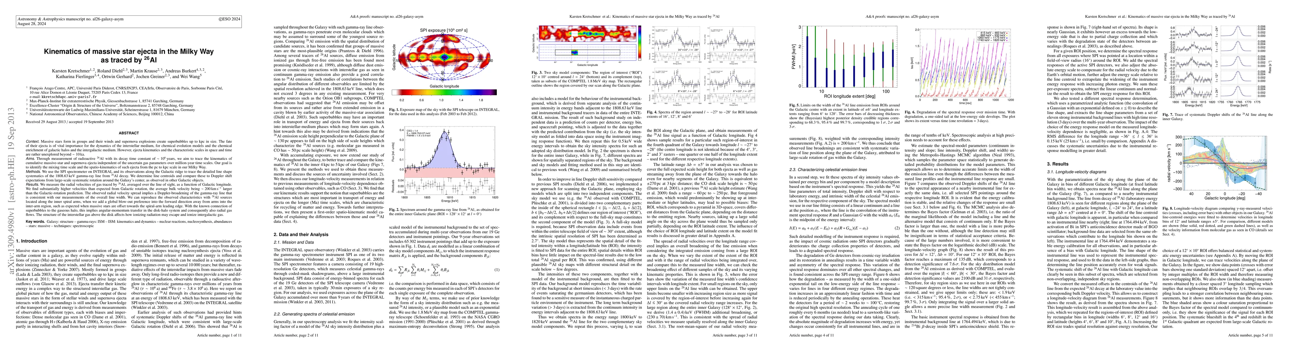 Researchers used 26Al to study massive star ejecta in the Milky Way, finding that their winds and supernova explosions create superbubbles with radial velocities up to ~200 km s^-1 higher than predicted Galactic rotation.