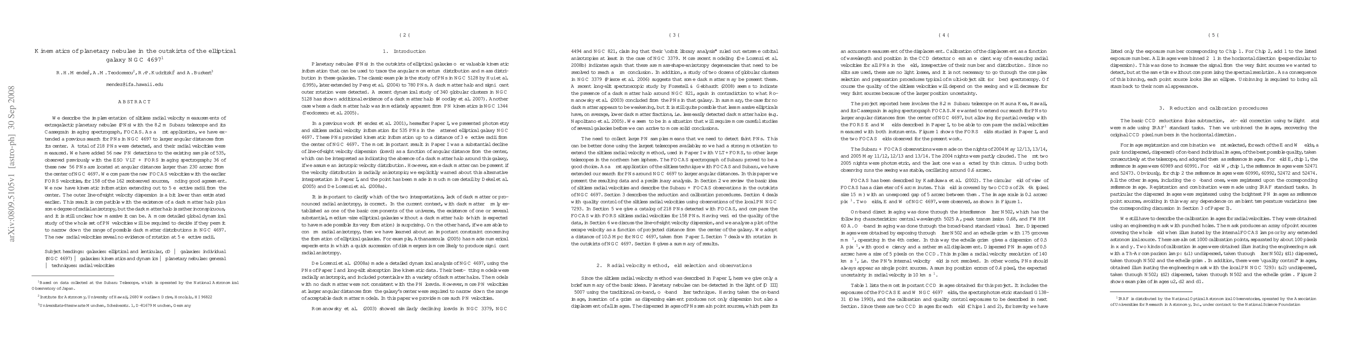 This study uses the Subaru telescope to measure radial velocities of 218 extragalactic planetary nebulae (PNs) in NGC 4697, extending previous observations to larger angular distances. The results show good agreement with earlier measurements and suggest a dark matter halo, though its mass remains uncertain.
