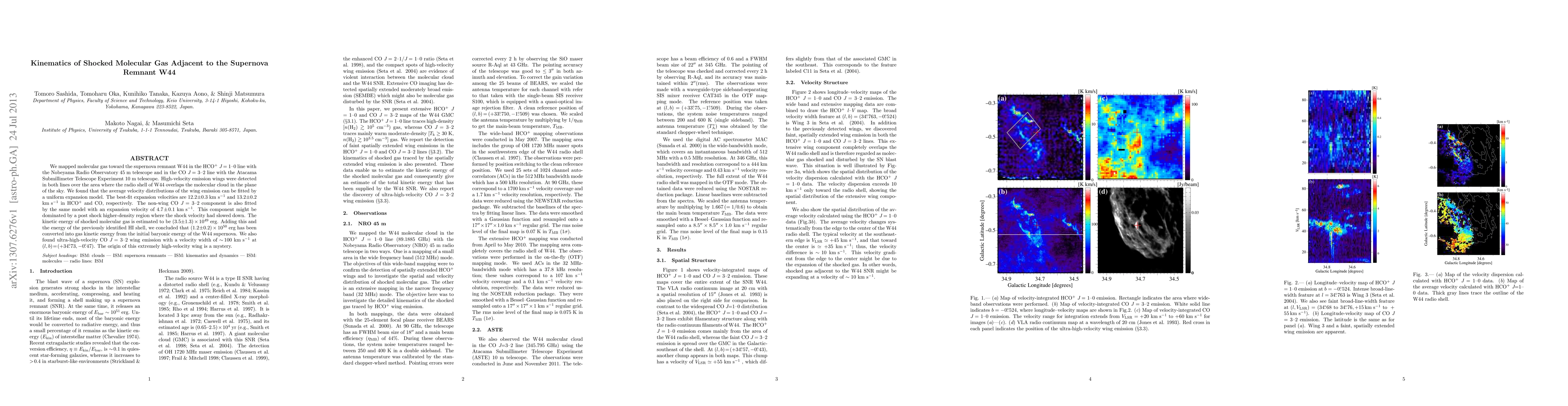 The study mapped molecular gas toward the supernova remnant W44 using the HCO+ J=1-0 line with the Nobeyama Radio Observatory 45 m telescope and the CO J=3-2 line with the Atacama Submillimeter Telescope Experiment 10 m telescope.