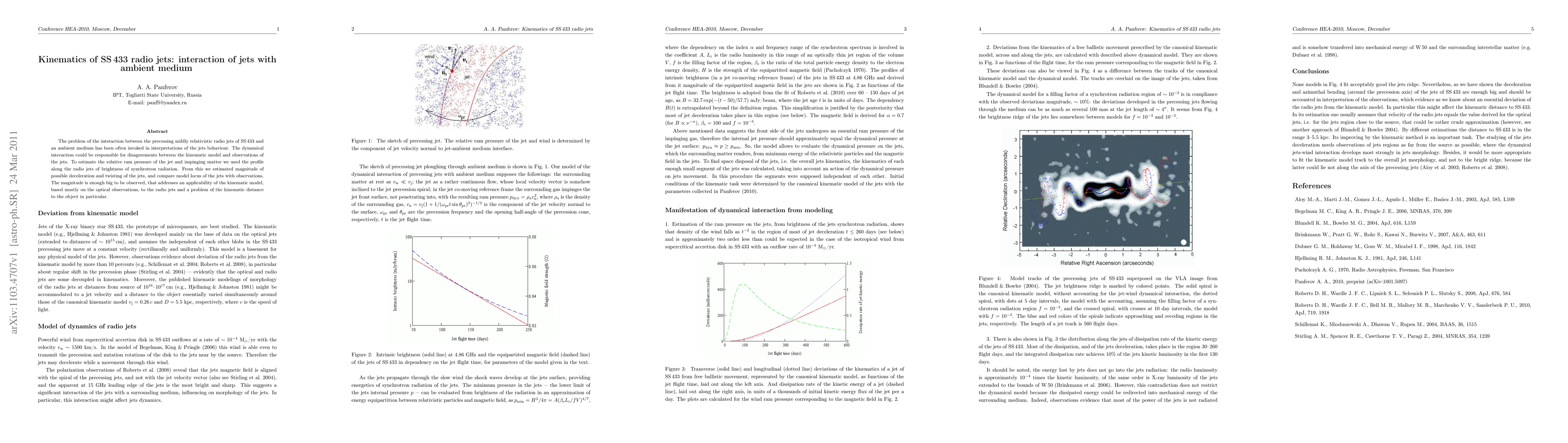 Researchers studied the interaction between SS433 radio jets and ambient medium, finding significant deceleration and twisting of the jets due to ram pressure, which challenges current kinematic models.