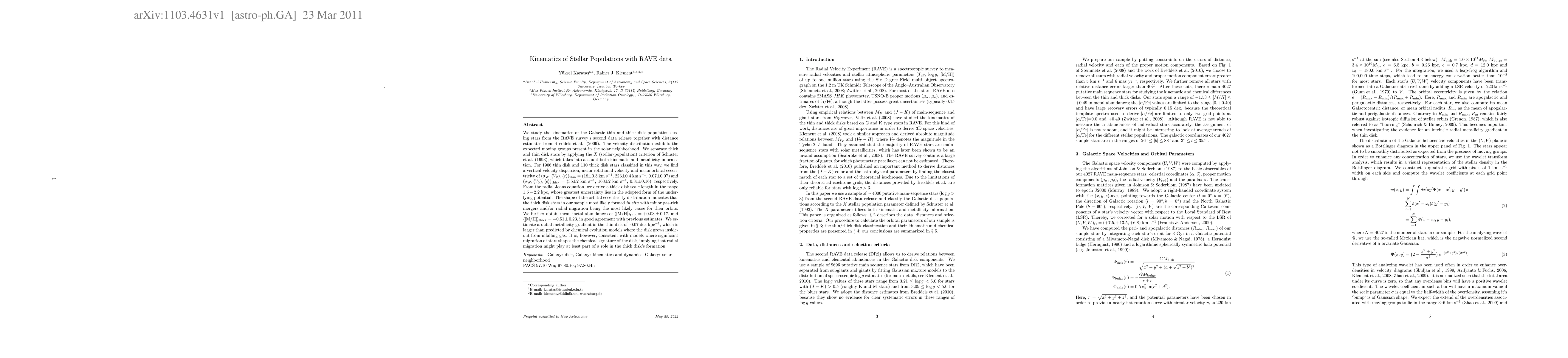 This paper analyzes the kinematics of Galactic thin and thick disk populations using RAVE survey data, finding distinct vertical velocity dispersions, rotational velocities, and eccentricities for the two populations. It suggests that thick disk stars likely formed in situ, with radial migration possibly contributing to their formation and chemical gradients.