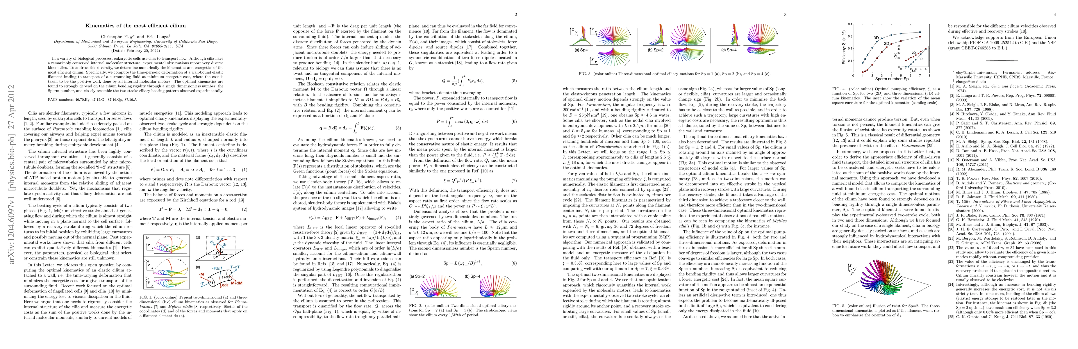 This paper numerically determines the optimal kinematics and energetics of the most efficient cilium, finding that the optimal motion strongly depends on the cilium's bending rigidity and closely resembles the experimentally observed two-stroke ciliary beating pattern. The study focuses on the minimum energetic cost associated with the internal molecular motors.