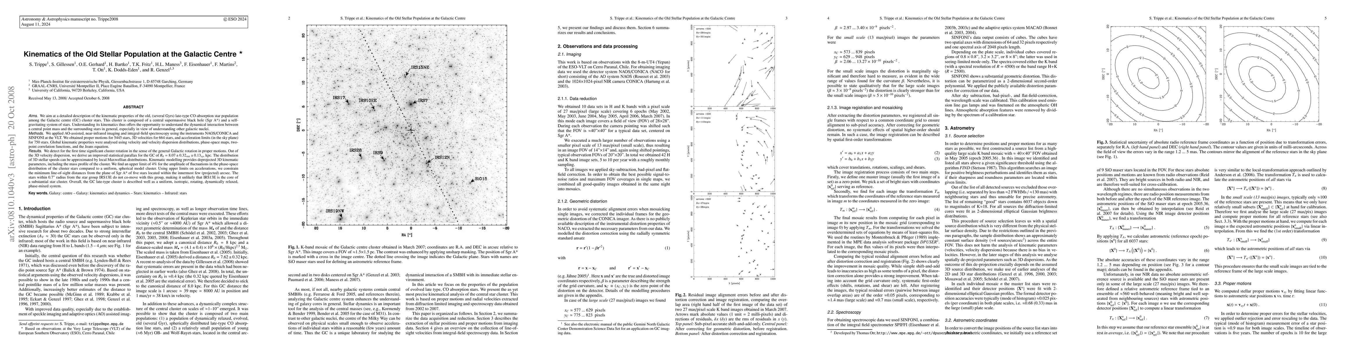 We aim at a detailed description of the kinematic properties of the old, (several Gyrs) late-type CO-absorption star population among the Galactic centre (GC) cluster stars. We applied AO-assisted, near-infrared imaging and integral-field spectroscopy using the instruments NAOS/CONICA and SINFONI at the VLT. We obtained proper motions for 5445 stars, 3D velocities for 664 stars, and acceleration limits (in the sky plane) for 750 stars. We detect for the first time significant cluster rotation in the sense of the general Galactic rotation in proper motions. Out of the 3D velocity dispersion, we derive an improved statistical parallax for the GC of R0 = 8.07 +/- 0.32 (stat) +/- 0.13 (sys) kpc. The distribution of 3D stellar speeds can be approximated by local Maxwellian distributions. Kinematic modelling provides deprojected 3D kinematic parameters, including the mass profile of the cluster. We find an upper limit of 4% for the amplitude of fluctuations in the phase-space distribution of the cluster stars compared to a uniform, spherical model cluster. Using upper limits on accelerations, we constrain the minimum line-of-sight distances from the plane of SgrA* of five stars located within the innermost few (projected) arcsec. The stars within 0.7'' radius from the star group IRS13E do not co-move with this group, making it unlikely that IRS13E is the core of a substantial star cluster. Overall, the GC late-type cluster is described well as a uniform, isotropic, rotating, dynamically relaxed, phase-mixed system.