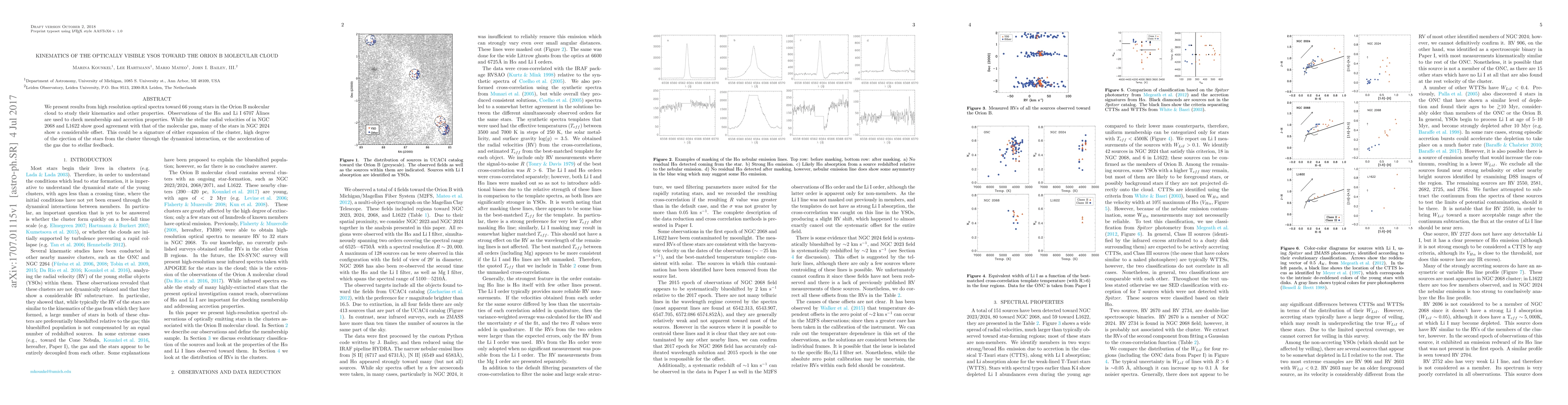 We present results from high resolution optical spectra toward 66 young stars in the Orion B molecular cloud to study their kinematics and other properties. Observations of the H$\alpha$ and Li I 6707 {\AA} lines are used to check membership and accretion properties. While the stellar radial velocities of in NGC 2068 and L1622 show good agreement with that of the molecular gas, many of the stars in NGC 2024 show a considerable offset. This could be a signature of either expansion of the cluster, high degree of the ejection of the stars from the cluster through the dynamical interaction, or the acceleration of the gas due to stellar feedback.