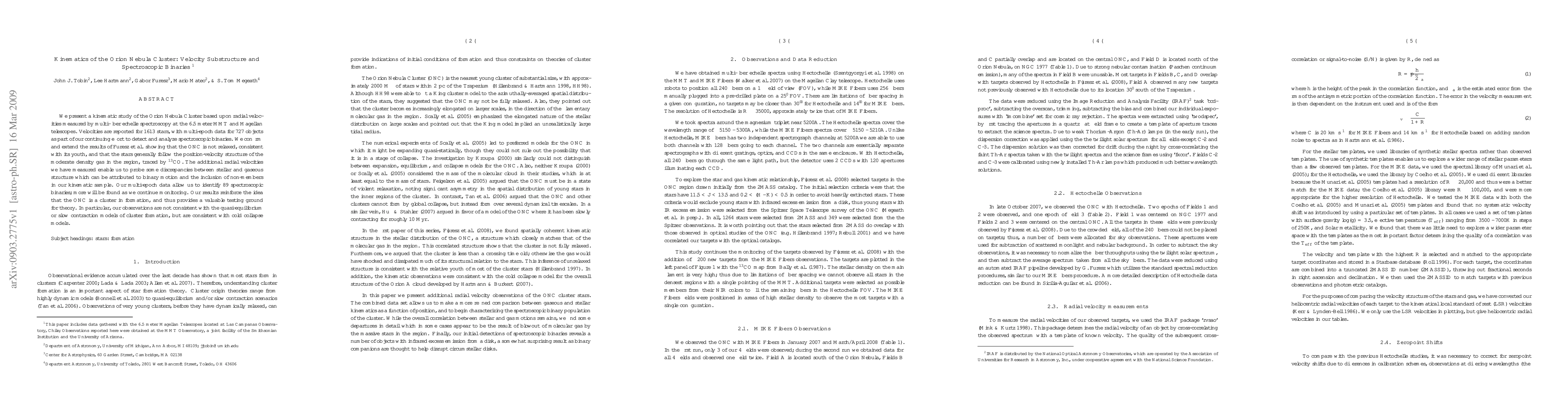 We present a kinematic study of the Orion Nebula Cluster based upon radial velocities measured by multi-fiber echelle spectroscopy at the 6.5 meter MMT and Magellan telescopes. Velocities are reported for 1613 stars, with multi-epoch data for 727 objects as part of our continuing effort to detect and analyze spectroscopic binaries. We confirm and extend the results of Furesz et al. showing that the ONC is not relaxed, consistent with its youth, and that the stars generally follow the position-velocity structure of the moderate density gas in the region, traced by $^{13}$CO. The additional radial velocities we have measured enable us to probe some discrepancies between stellar and gaseous structure which can be attributed to binary motion and the inclusion of non-members in our kinematic sample. Our multi-epoch data allow us to identify 89 spectroscopic binaries; more will be found as we continue monitoring. Our results reinforce the idea that the ONC is a cluster in formation, and thus provides a valuable testing ground for theory. In particular, our observations are not consistent with the quasi-equilibrium or slow contraction models of cluster formation, but are consistent with cold collapse models.