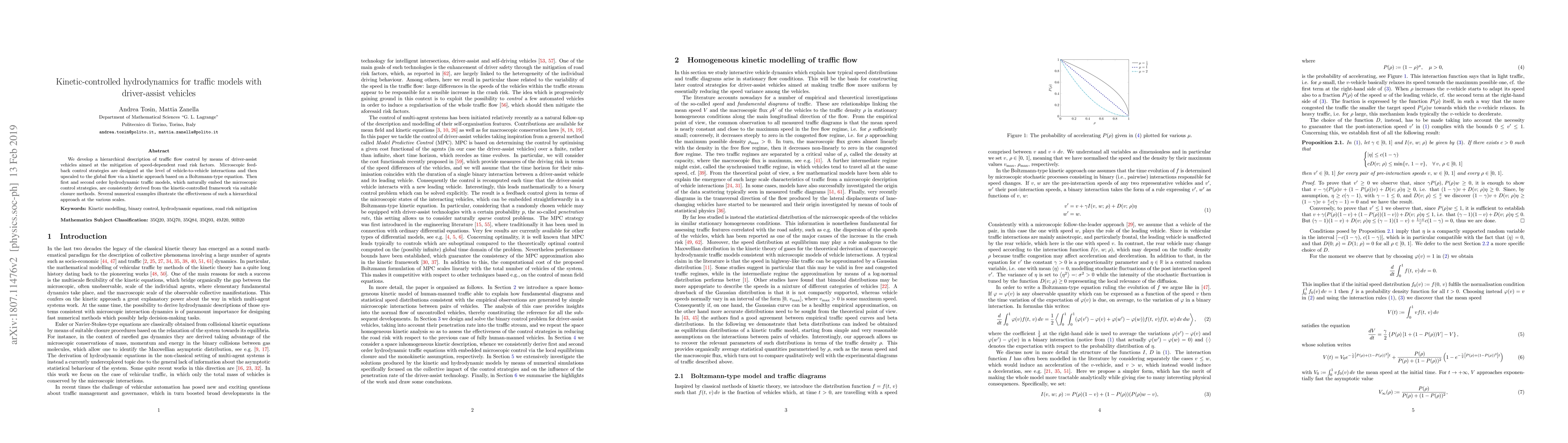 This paper develops a hierarchical traffic control model using driver-assist vehicles to mitigate road risks by integrating microscopic control strategies into macroscopic traffic models. The approach combines kinetic theory and hydrodynamic models to upscale vehicle-to-vehicle interactions into global traffic flow, demonstrating effectiveness through numerical examples.