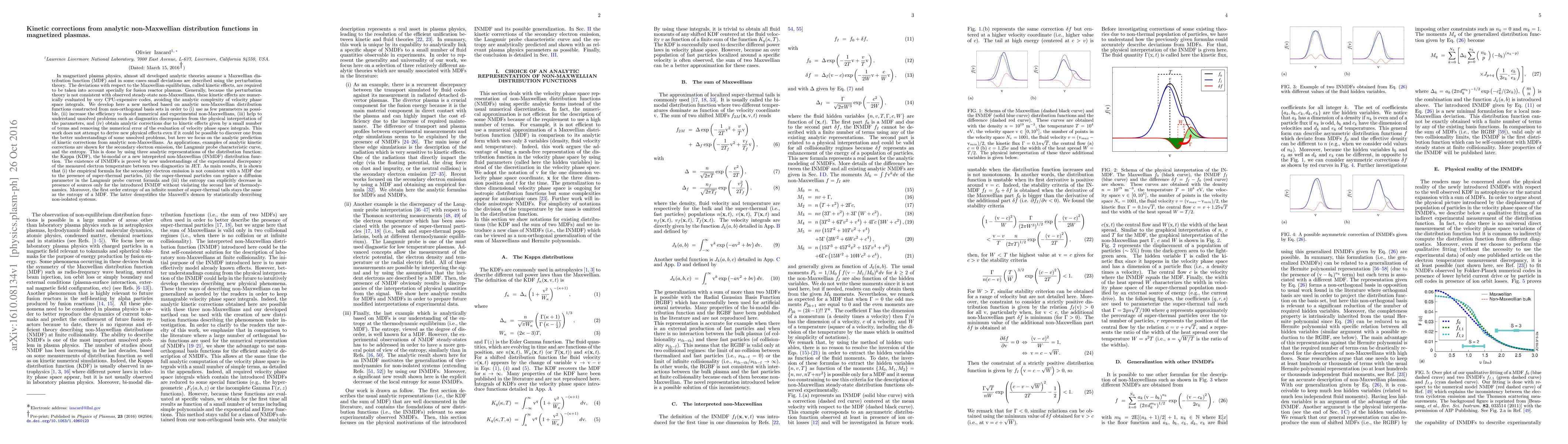This paper develops a new method for calculating kinetic corrections in magnetized plasmas using analytic non-Maxwellian distribution functions. The approach aims to efficiently model non-Maxwellian behaviors, provide insights into diagnostics discrepancies, and yield analytic corrections with minimal numerical errors, without introducing new physical effects.