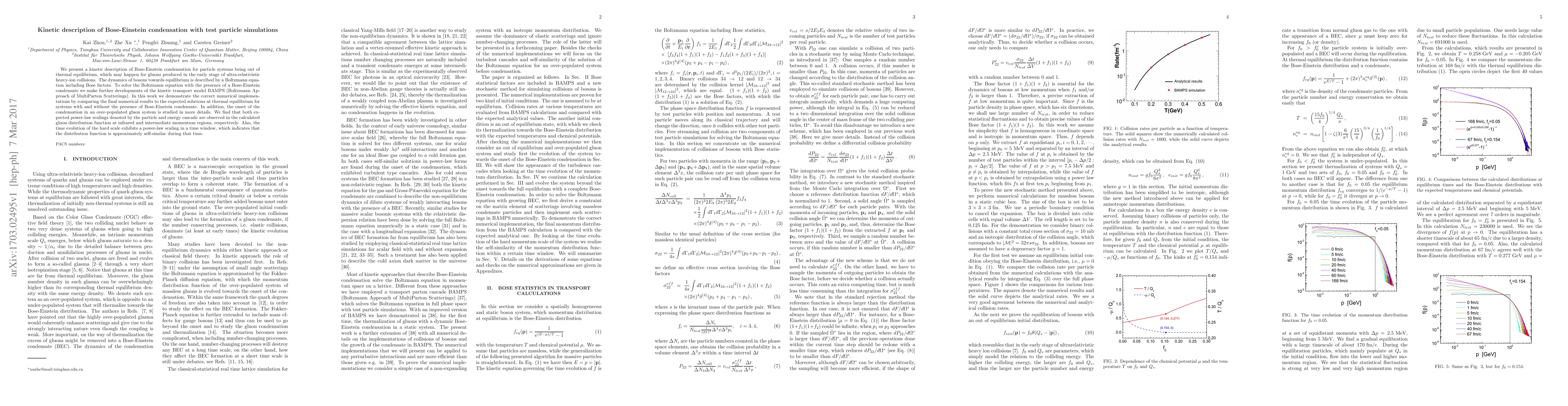 We present a kinetic description of Bose-Einstein condensation for particle systems being out of thermal equilibrium, which may happen for gluons produced in the early stage of ultra-relativistic heavy-ion collisions. The dynamics of bosons towards equilibrium is described by a Boltzmann equation including Bose factors. To solve the Boltzmann equation with the presence of a Bose-Einstein condensate we make further developments of the kinetic transport model BAMPS (Boltzmann Approach of MultiParton Scatterings). In this work we demonstrate the correct numerical implementations by comparing the final numerical results to the expected solutions at thermal equilibrium for systems with and without the presence of Bose-Einstein condensate. In addition, the onset of the condensation in an over-populated gluon system is studied in more details. We find that both expected power-law scalings denoted by the particle and energy cascade are observed in the calculated gluon distribution function at infrared and intermediate momentum regions, respectively. Also, the time evolution of the hard scale exhibits a power-law scaling in a time window, which indicates that the distribution function is approximately self-similar during that time.