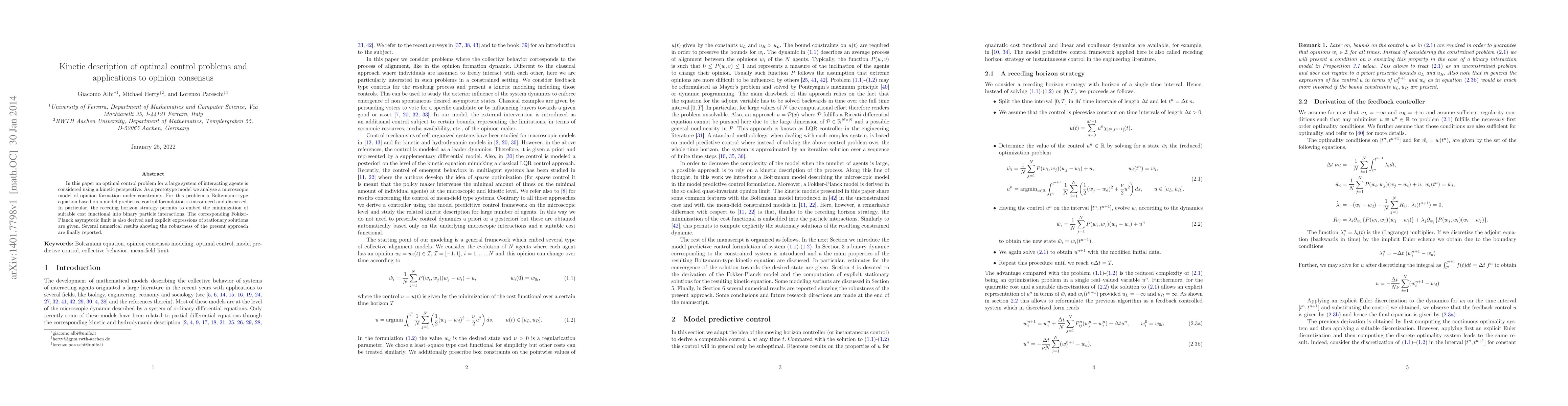 This paper explores an optimal control problem for a system of interacting agents using a kinetic approach, focusing on a microscopic model of opinion consensus. It introduces a Boltzmann-type equation based on model predictive control, demonstrating the receding horizon strategy's effectiveness in minimizing cost functionals through binary particle interactions, and provides numerical results showcasing the method's robustness.