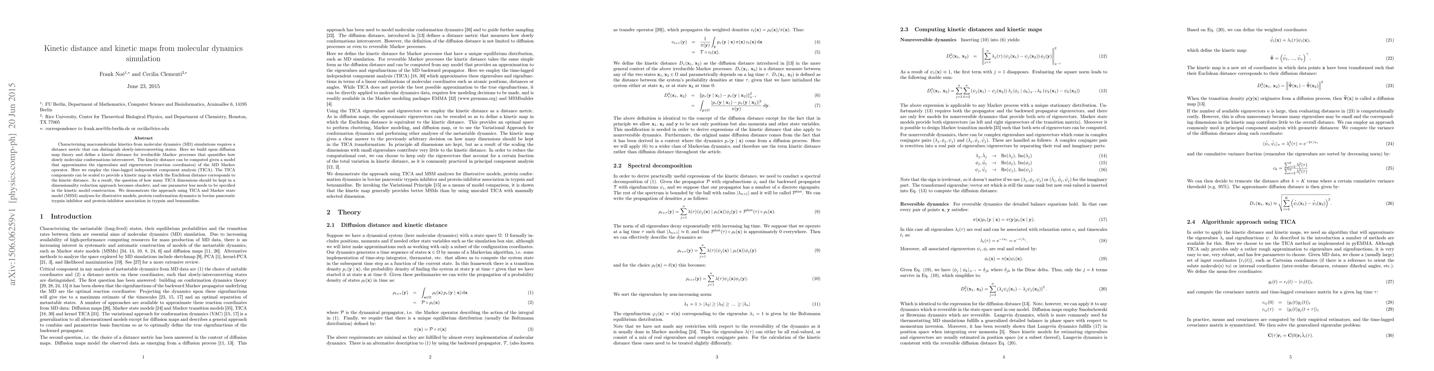 This research paper introduces a new method to analyze macromolecular kinetics from molecular dynamics simulations using kinetic distance and maps, providing a more efficient way to understand protein conformation dynamics and binding processes.