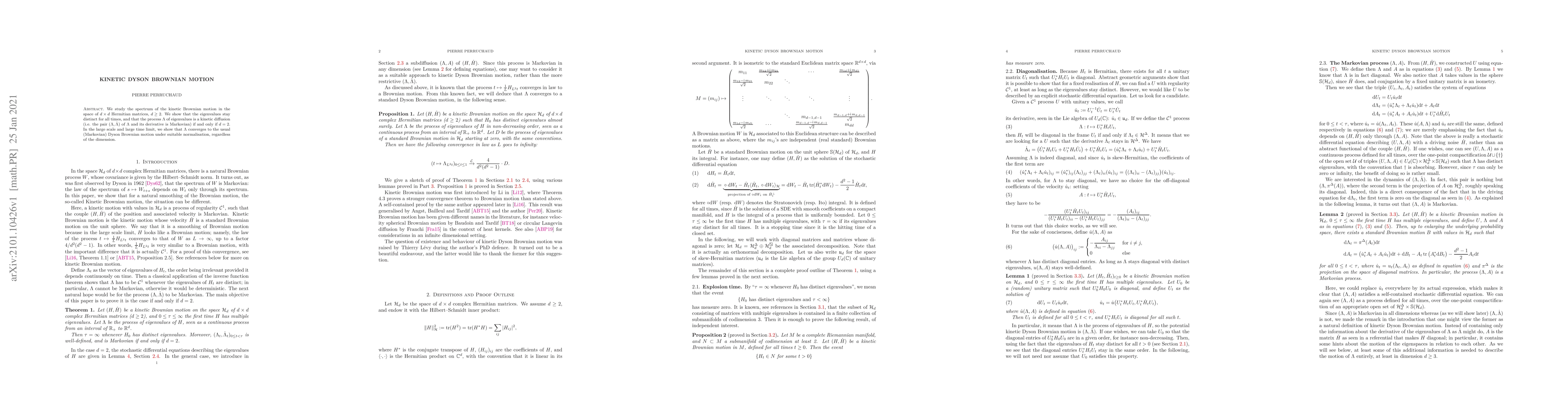 We study the spectrum of the kinetic Brownian motion in the space of $d\times d$ Hermitian matrices, $d\geq2$. We show that the eigenvalues stay distinct for all times, and that the process $\Lambda$ of eigenvalues is a kinetic diffusion (i.e. the pair $(\Lambda,\dot\Lambda)$ of $\Lambda$ and its derivative is Markovian) if and only if $d=2$. In the large scale and large time limit, we show that $\Lambda$ converges to the usual (Markovian) Dyson Brownian motion under suitable normalisation, regardless of the dimension.