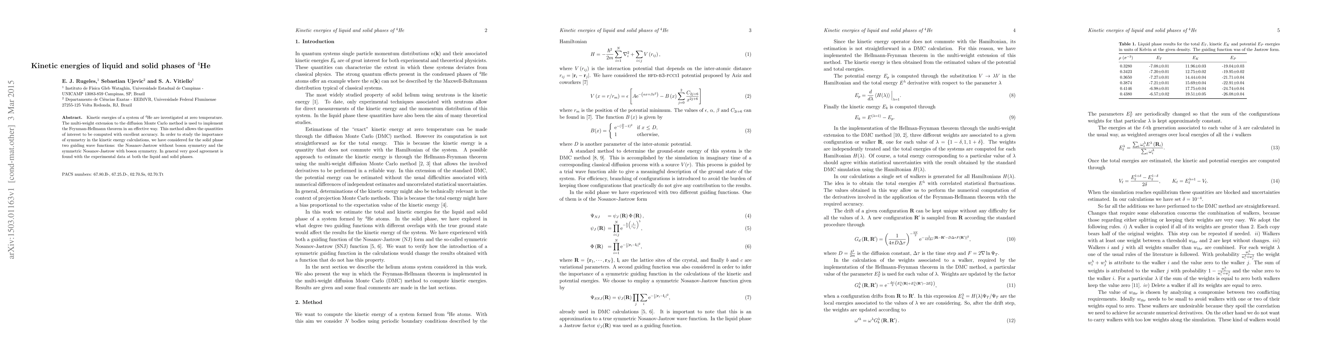 This paper investigates the kinetic energies of liquid and solid phases of $^4$He at zero temperature using the multi-weight extension of the diffusion Monte Carlo method, achieving high accuracy. It compares the results obtained with two guiding wave functions, highlighting the role of symmetry in kinetic energy calculations, and finds good agreement with experimental data.