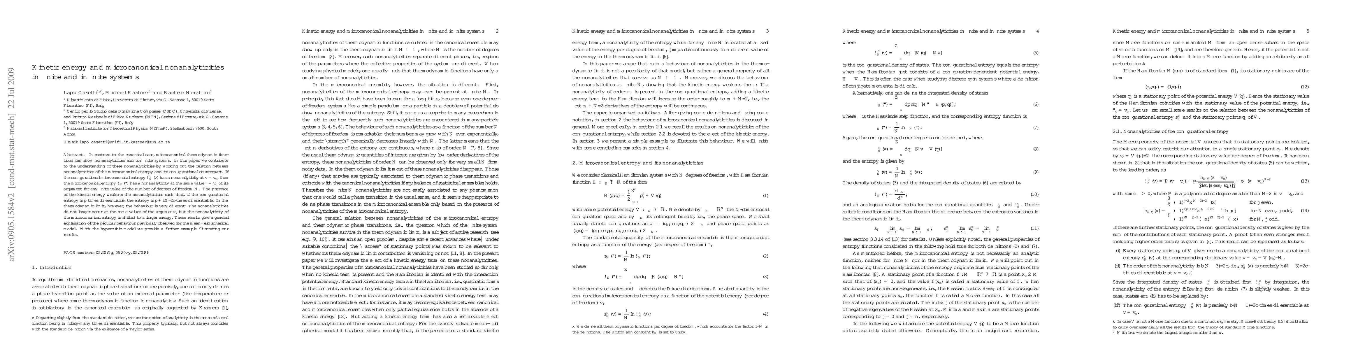 This paper explores nonanalyticities in microcanonical thermodynamic functions for finite and infinite systems, revealing that kinetic energy weakens these nonanalyticities and shifts their occurrence in the thermodynamic limit, providing a general explanation for observed phenomena in models like the mean-field spherical model.