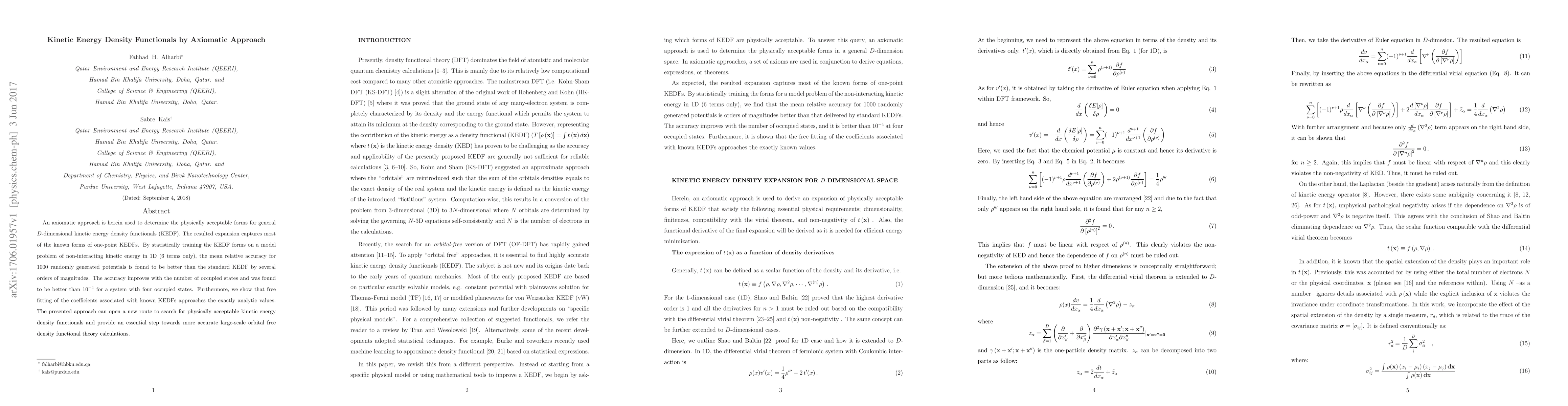 This paper develops a new axiomatic approach to determine kinetic energy density functionals (KEDF) in $D$-dimensions, capturing most known forms. The proposed KEDF, trained on a 1D model, shows significantly higher accuracy for various potentials compared to standard KEDFs, especially for systems with more occupied states.