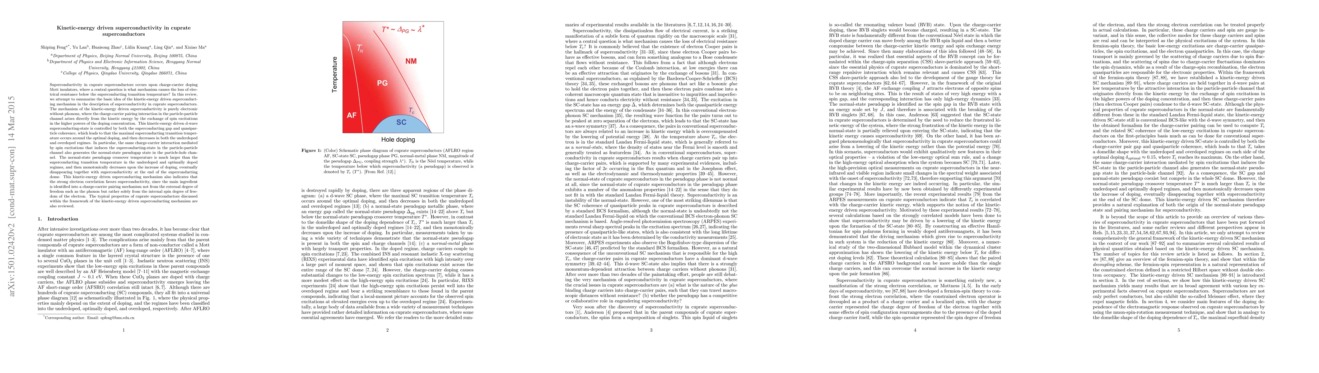 This paper reviews the kinetic-energy driven superconductivity mechanism in cuprate superconductors, explaining how superconductivity arises from electronic interactions without phonons, primarily through spin excitations. The optimal doping level maximizes superconductivity, while pseudogap states emerge in the normal state, diminishing with increased doping.