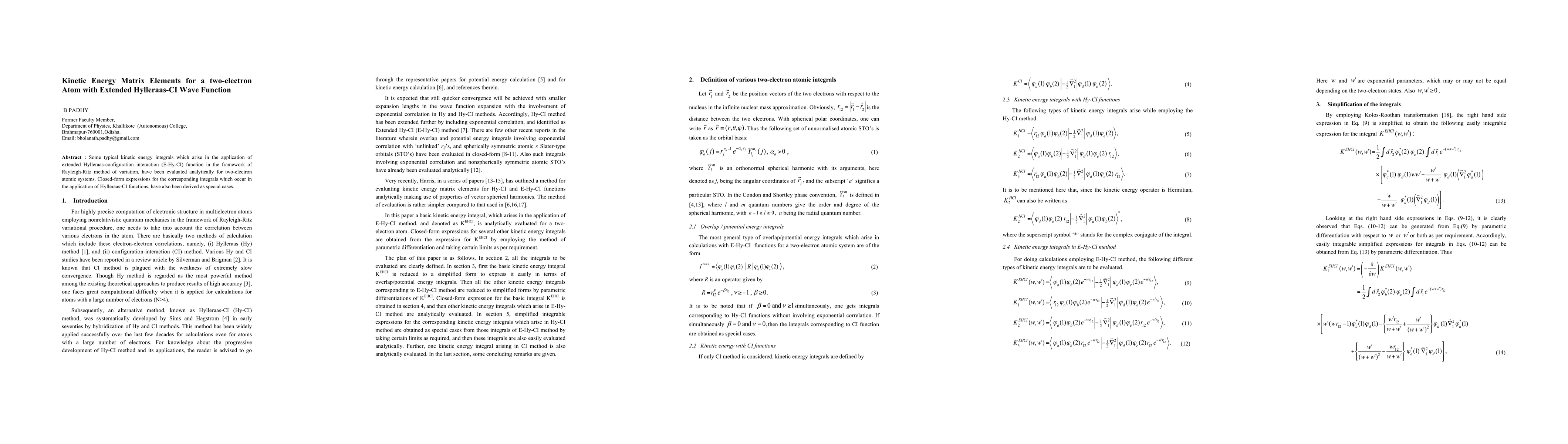This paper evaluates analytically typical kinetic energy integrals for two-electron atoms using the extended Hylleraas-configuration interaction method within the Rayleigh-Ritz variational framework. It also derives closed-form expressions for these integrals as special cases of the general approach.