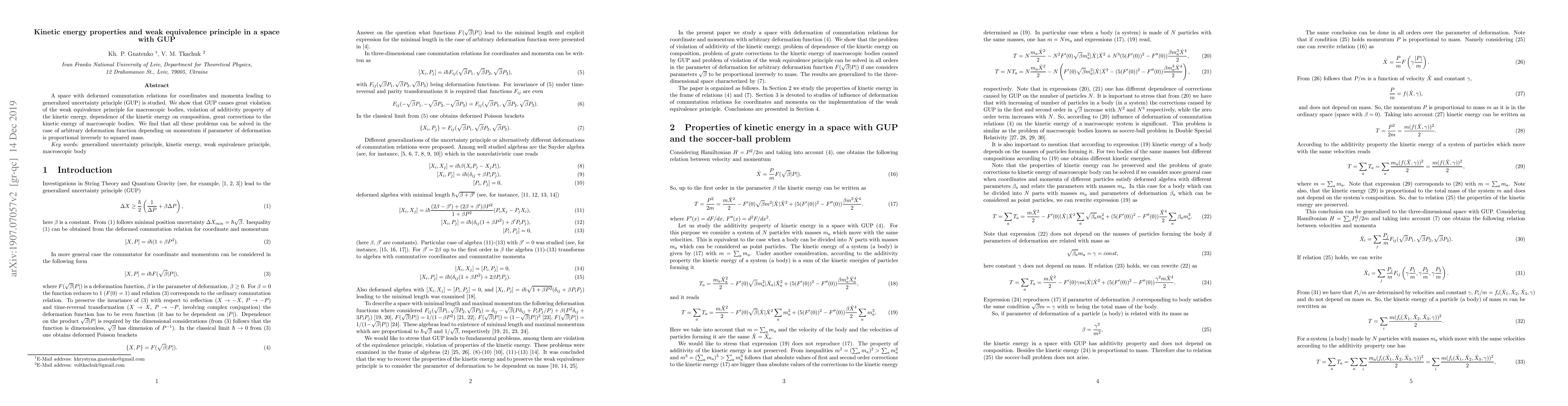 A study investigates how a generalized uncertainty principle (GUP) affects macroscopic bodies in space, finding that it causes significant violations of the weak equivalence principle and kinetic energy properties, but these issues can be resolved with a specific deformation function.