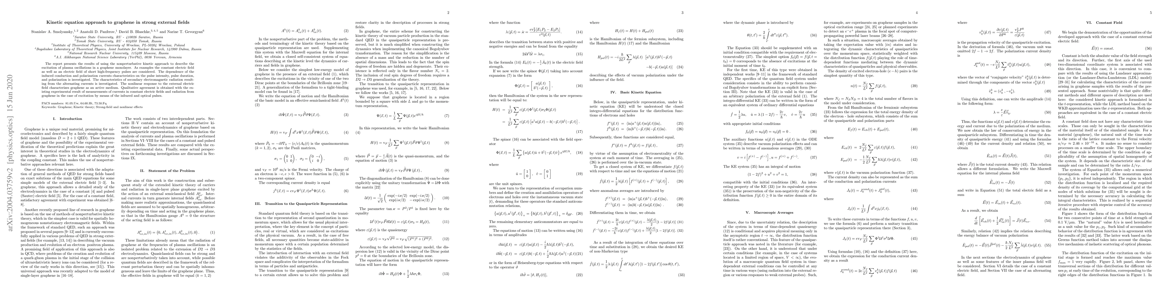 This paper uses a kinetic equation approach to study graphene's response to strong external electric fields, finding that it exhibits nonlinear behavior and characteristics similar to active media, with agreements with existing experimental results for constant electric fields and pulsed excitation.