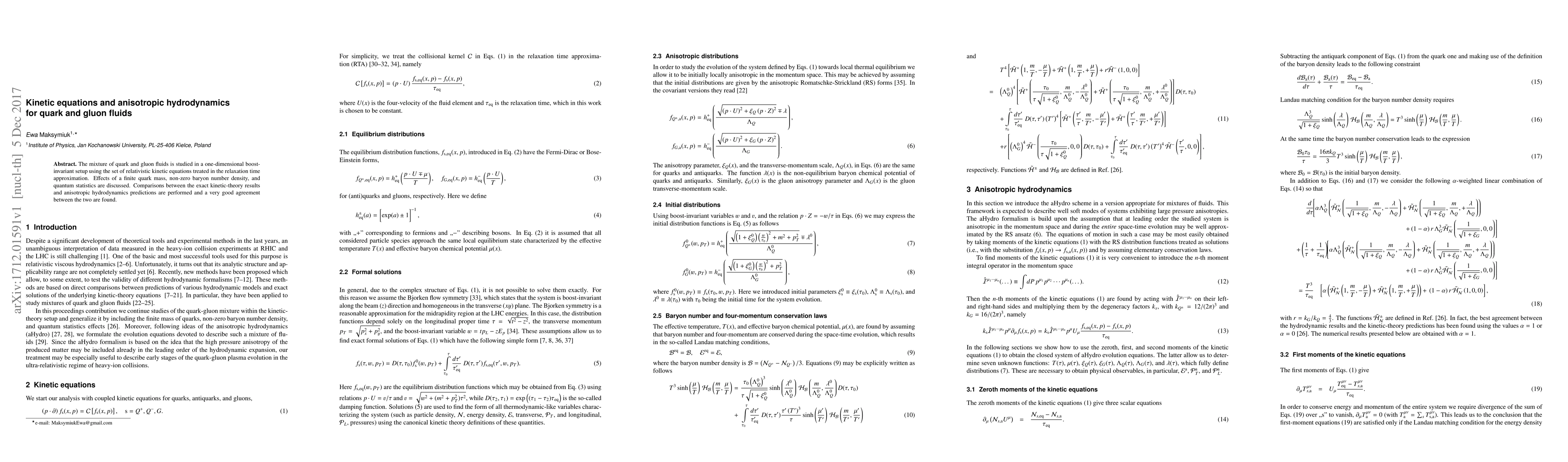 This paper investigates quark and gluon fluids in a one-dimensional, boost-invariant setup using relativistic kinetic equations and finds good agreement between exact kinetic theory results and anisotropic hydrodynamics predictions, considering factors like finite quark mass and quantum statistics.
