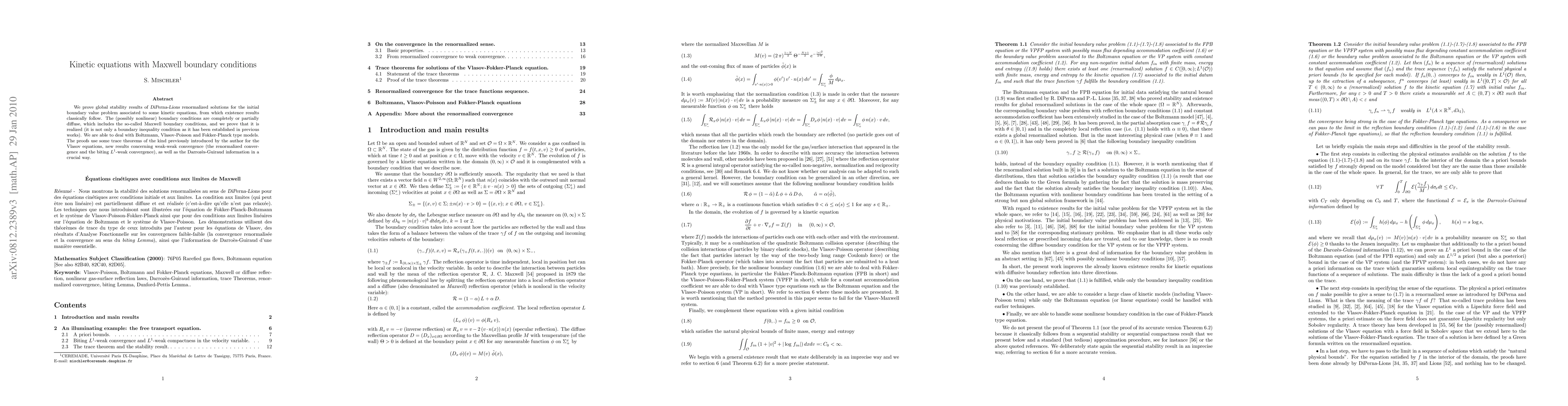 This paper proves global stability for DiPerna-Lions renormalized solutions of kinetic equations with Maxwell boundary conditions, demonstrating that these conditions are realized rather than merely theoretical. The study covers Boltzmann, Vlasov-Poisson, and Fokker-Planck models, utilizing trace theorems, weak-weak convergence, and Darrozès-Guiraud information.