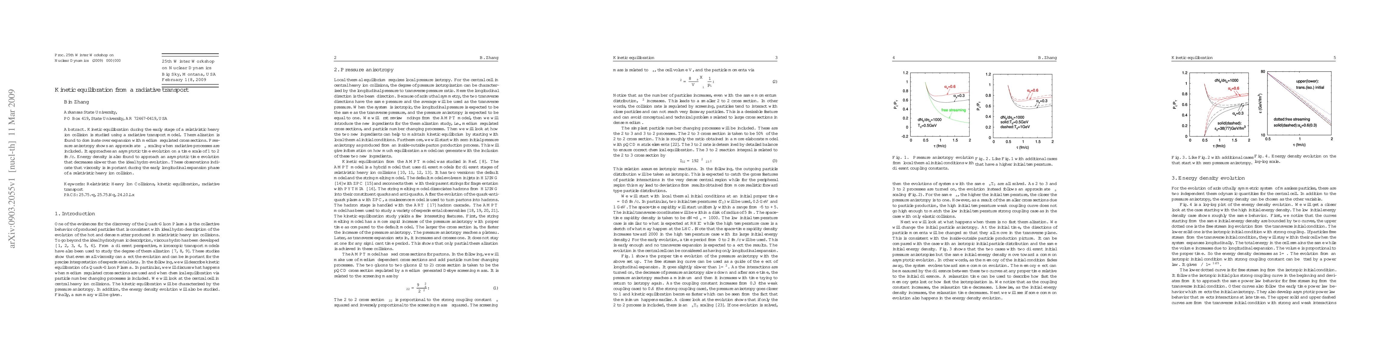 This paper investigates kinetic equilibration in relativistic heavy ion collisions using a radiative transport model, finding thermalization to dominate over expansion and viscosity to play a key role in the early longitudinal expansion phase.