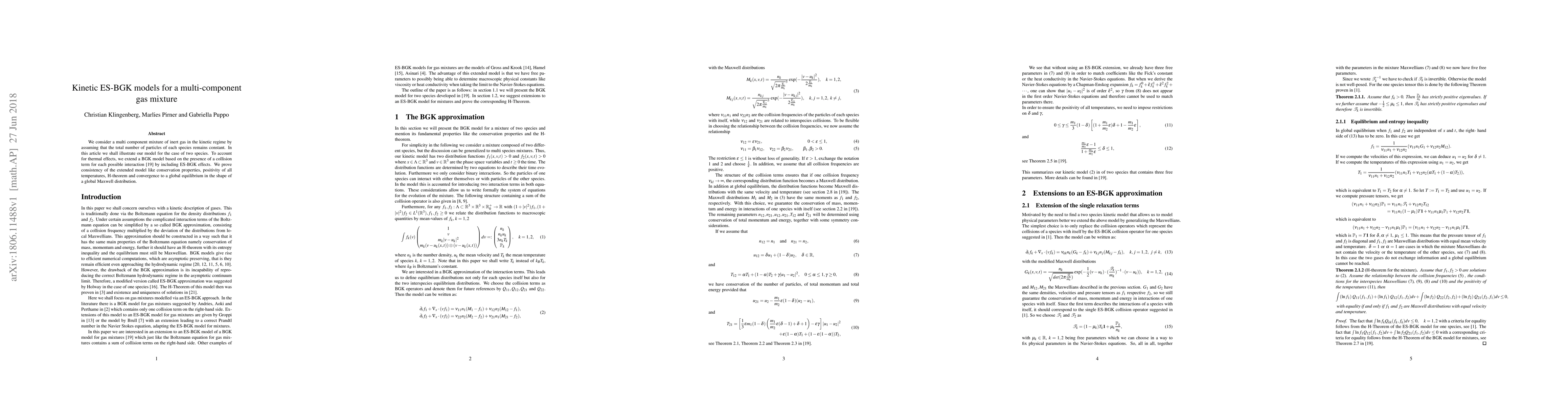 Researchers developed a kinetic ES-BGK model for predicting behavior of multi-component gas mixtures, demonstrating conservation properties and convergence to a global Maxwell distribution in the kinetic regime.
