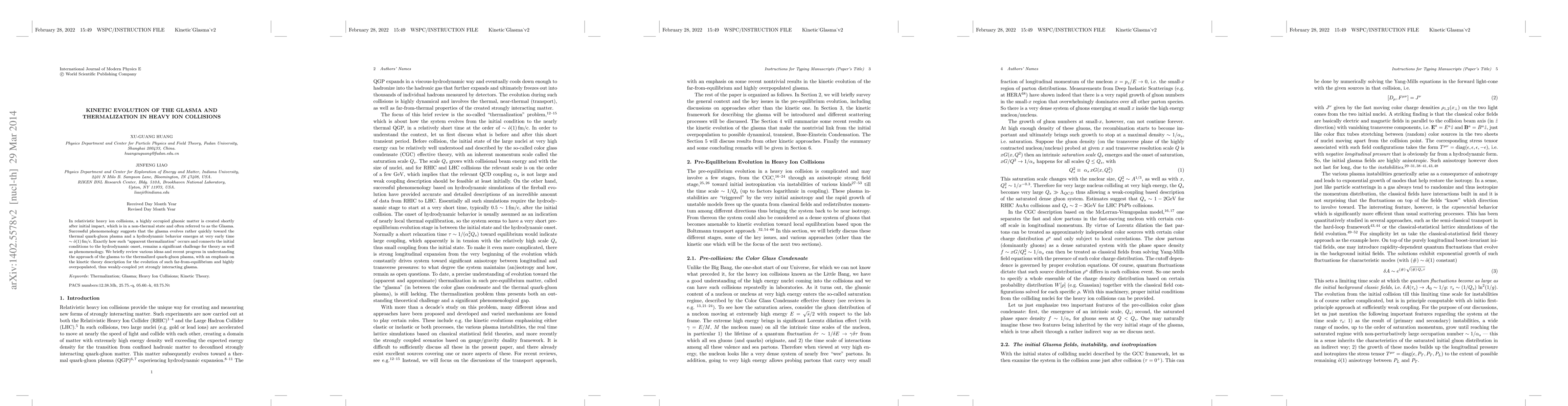 This paper reviews the kinetic evolution of the Glasma, a non-thermal gluonic matter formed in relativistic heavy ion collisions, towards thermalization into a quark-gluon plasma, emphasizing the transition mechanisms and the role of kinetic theory in understanding this process.