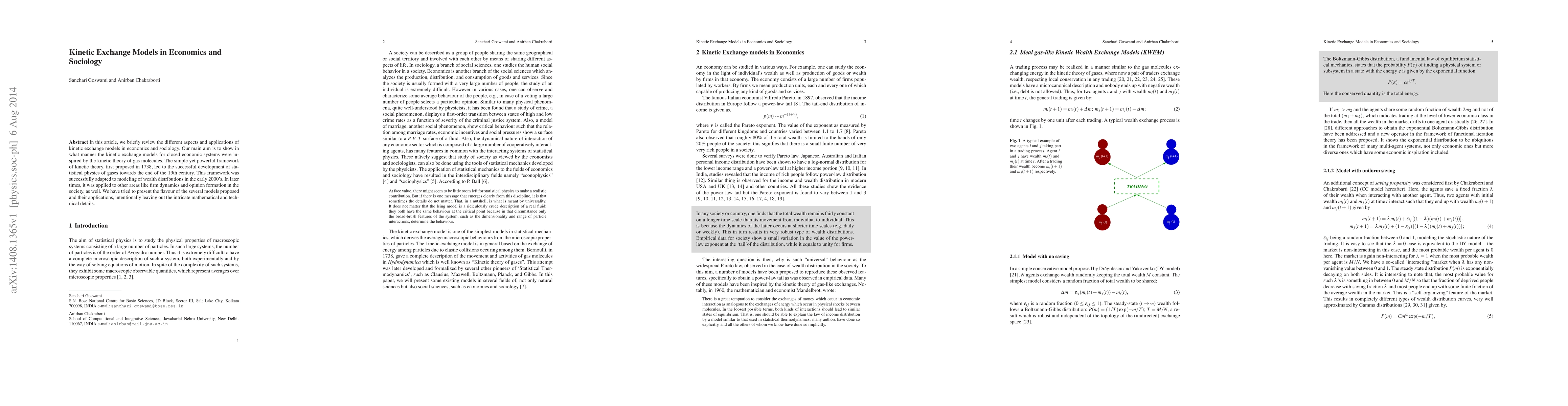 This paper reviews kinetic exchange models in economics and sociology, tracing their inspiration from the kinetic theory of gas molecules. It highlights their adaptation to modeling wealth distributions, firm dynamics, and opinion formation, while avoiding complex mathematical details.