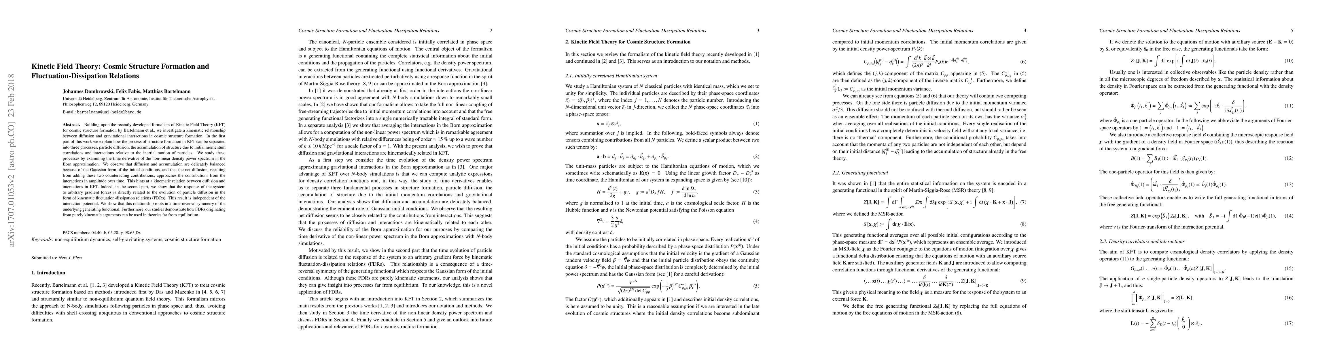 Research paper explores kinetic field theory for cosmic structure formation, revealing a kinematic relationship between diffusion and gravitational interactions, leading to fluctuation-dissipation relations that can inform theories far from equilibrium.