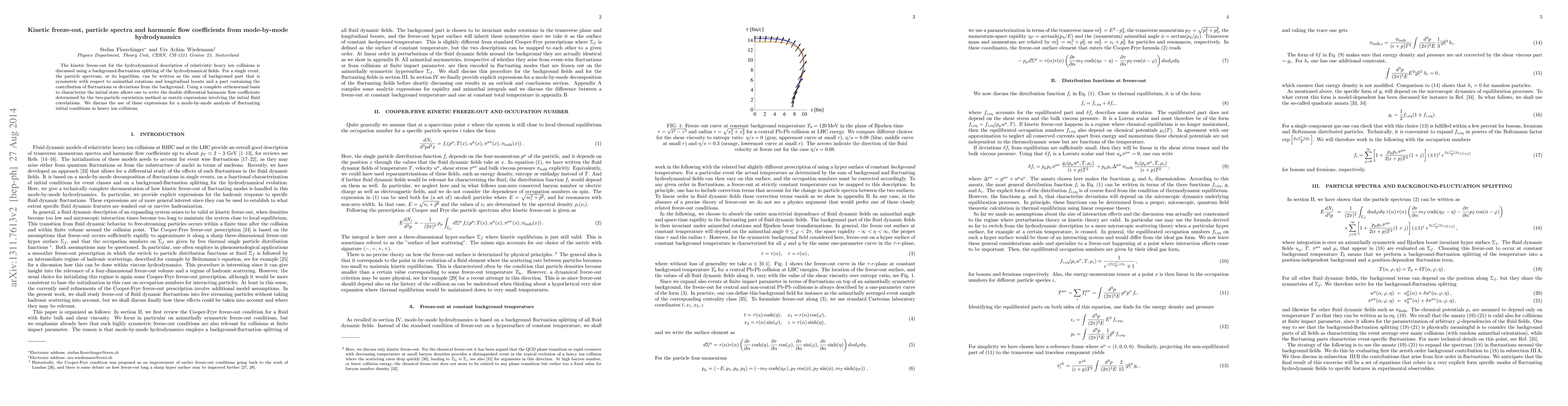 The kinetic freeze-out for the hydrodynamical description of relativistic heavy ion collisions is discussed using a background-fluctuation splitting of the hydrodynamical fields. For a single event, the particle spectrum, or its logarithm, can be written as the sum of background part that is symmetric with respect to azimuthal rotations and longitudinal boosts and a part containing the contribution of fluctuations or deviations from the background. Using a complete orthonormal basis to characterize the initial state allows one to write the double differential harmonic flow coefficients determined by the two-particle correlation method as matrix expressions involving the initial fluid correlations. We discuss the use of these expressions for a mode-by-mode analysis of fluctuating initial conditions in heavy ion collisions.
