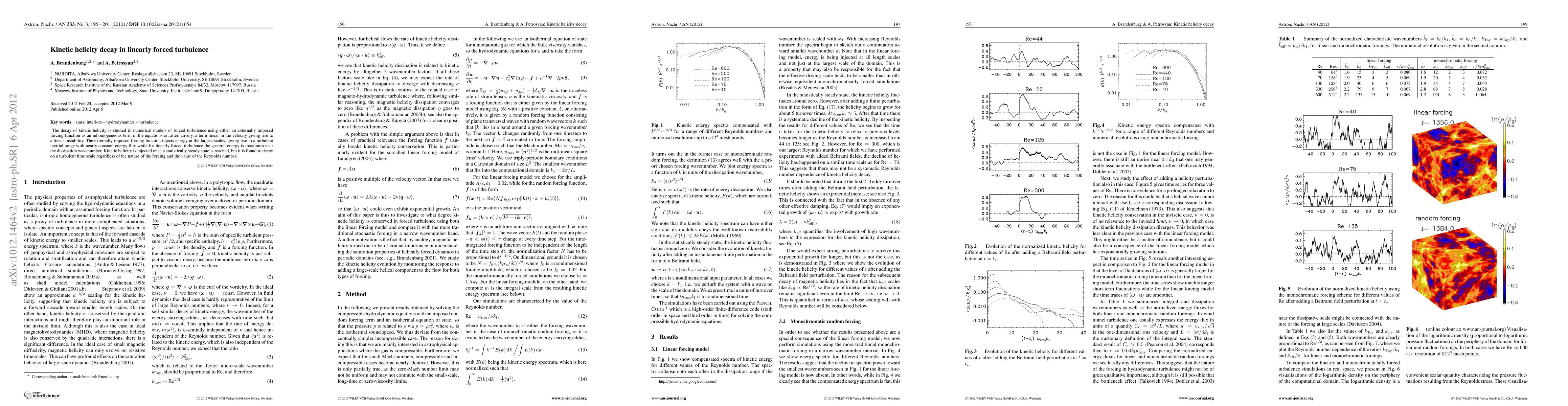 This paper investigates the decay of kinetic helicity in numerically simulated forced turbulence, finding that it decays on a turbulent time scale regardless of the forcing method or Reynolds number, despite the differences in energy distribution between externally forced and linearly forced turbulence.