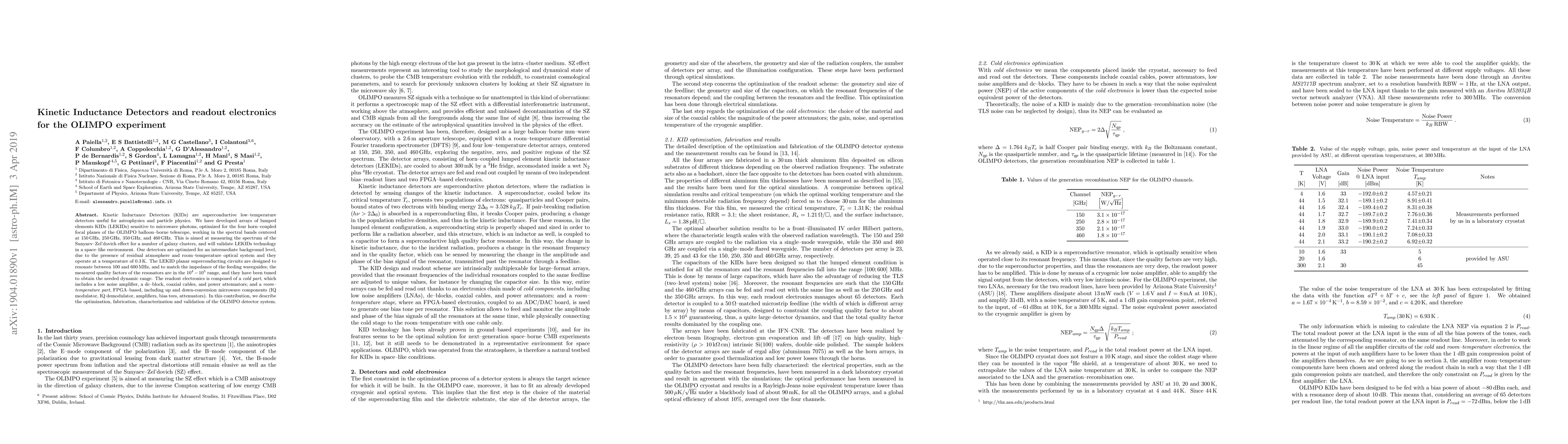 This paper details the development of Kinetic Inductance Detectors (KIDs) and their readout electronics for the OLIMPO balloon-borne telescope, focusing on arrays optimized for microwave photon detection in four spectral bands. The detectors aim to measure the Sunyaev-Zel'dovich effect in galaxy clusters, operating at 0.3 K with high quality factors and validated in a space-like environment.