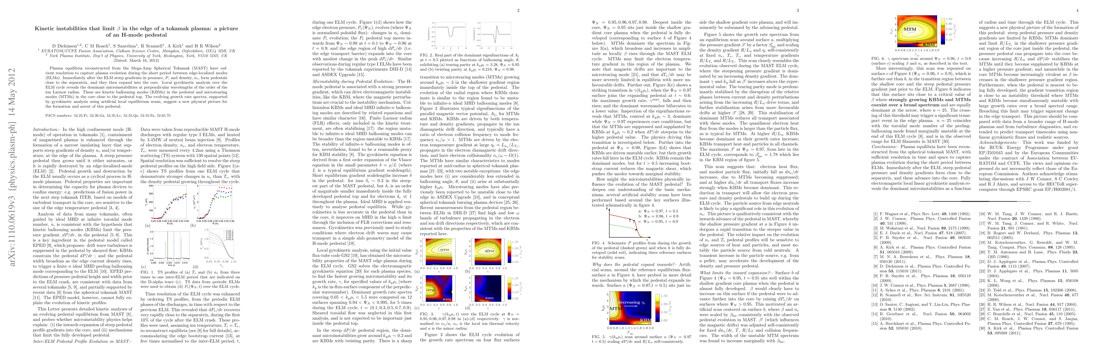 This paper investigates kinetic instabilities in the edge of a tokamak plasma, focusing on the H-mode pedestal formation and its limitations. Using high-resolution data from the Mega-Amp Spherical Tokamak, the study identifies kinetic ballooning modes and microtearing modes as dominant instabilities, providing insights into the pedestal's evolution and stabilization.