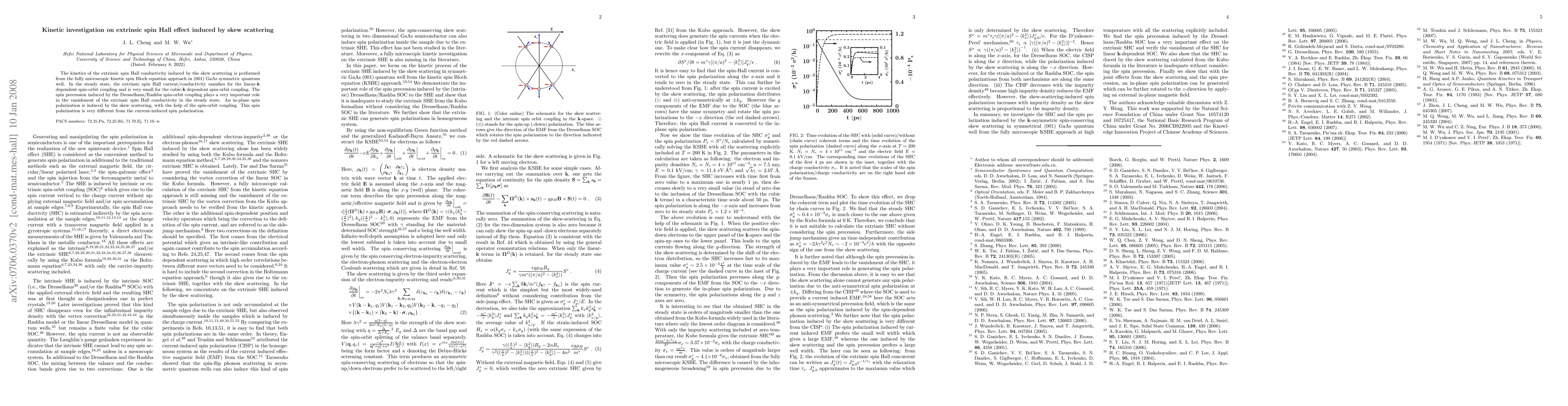 This research investigates the kinetics of extrinsic spin Hall effect in $(001)$ GaAs quantum wells, finding that spin Hall conductivity vanishes in steady state due to spin precession from Dresselhaus/Rashba interactions, while skew scattering induces in-plane spin polarization distinct from current-induced polarization.