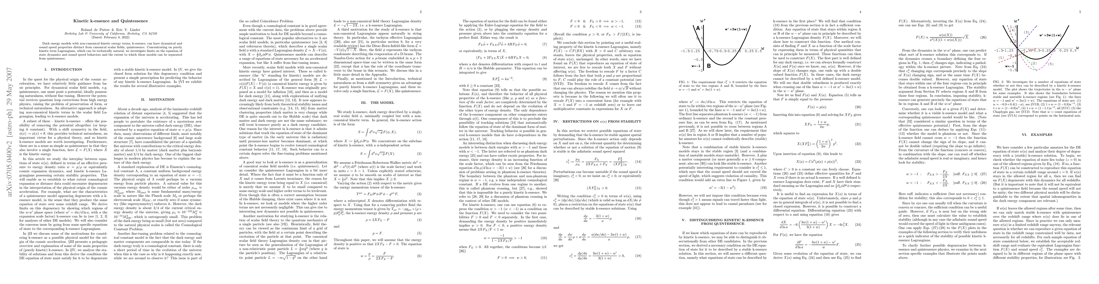 This paper explores dark energy models based on k-essence, focusing on purely kinetic term Lagrangians, and investigates their distinct dynamical properties compared to quintessence, aiming to determine how these models can be differentiated through equation of state dynamics and sound speed behaviors.