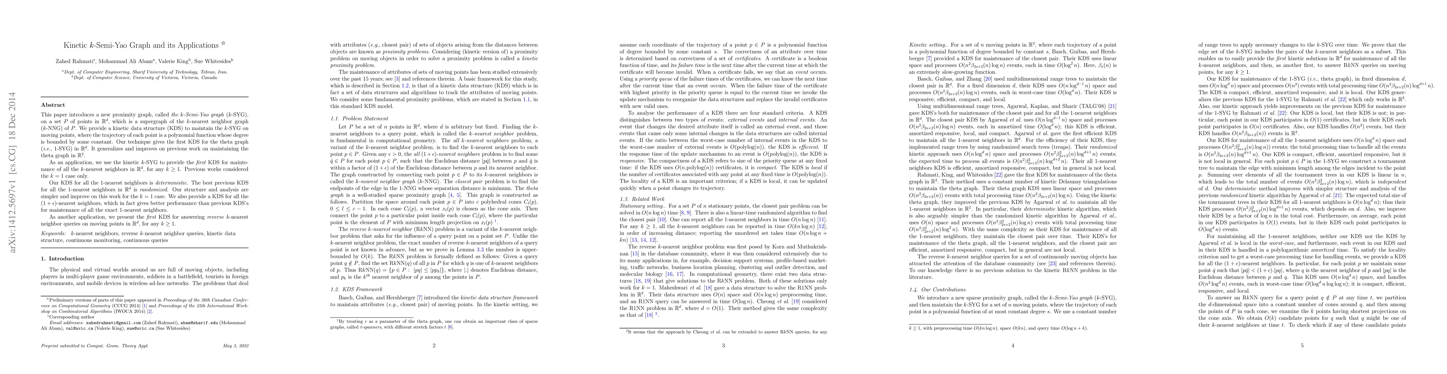 This paper introduces a new proximity graph, called the $k$-Semi-Yao graph ($k$-SYG), on a set $P$ of points in $\mathbb{R}^d$, which is a supergraph of the $k$-nearest neighbor graph ($k$-NNG) of $P$. We provide a kinetic data structure (KDS) to maintain the $k$-SYG on moving points, where the trajectory of each point is a polynomial function whose degree is bounded by some constant. Our technique gives the first KDS for the theta graph (\ie, $1$-SYG) in $\mathbb{R}^d$. It generalizes and improves on previous work on maintaining the theta graph in $\mathbb{R}^2$. As an application, we use the kinetic $k$-SYG to provide the first KDS for maintenance of all the $k$-nearest neighbors in $\mathbb{R}^d$, for any $k\geq 1$. Previous works considered the $k=1$ case only. Our KDS for all the $1$-nearest neighbors is deterministic. The best previous KDS for all the $1$-nearest neighbors in $ \mathbb{R}^d$ is randomized. Our structure and analysis are simpler and improve on this work for the $k=1$ case. We also provide a KDS for all the $(1+\epsilon)$-nearest neighbors, which in fact gives better performance than previous KDS's for maintenance of all the exact $1$-nearest neighbors. As another application, we present the first KDS for answering reverse $k$-nearest neighbor queries on moving points in $ \mathbb{R}^d$, for any $k\geq 1$.