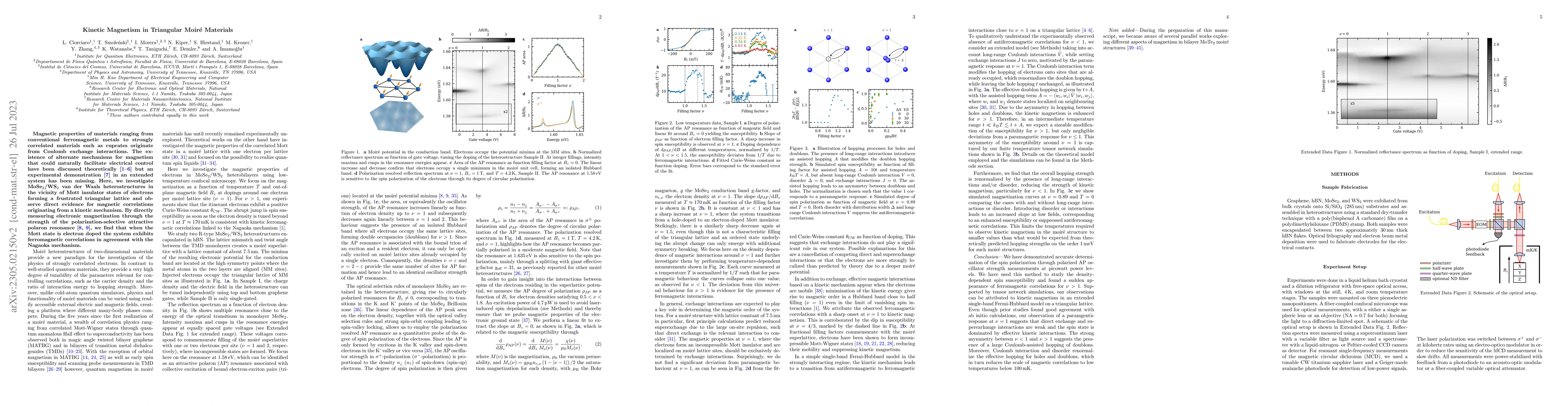 Magnetic properties of materials ranging from conventional ferromagnetic metals to strongly correlated materials such as cuprates originate from Coulomb exchange interactions. The existence of alternate mechanisms for magnetism that could naturally facilitate electrical control have been discussed theoretically but an experimental demonstration in an extended system has been missing. Here, we investigate MoSe$_2$/WS$_2$ van der Waals heterostructures in the vicinity of Mott insulator states of electrons forming a frustrated triangular lattice and observe direct evidence for magnetic correlations originating from a kinetic mechanism. By directly measuring electronic magnetization through the strength of the polarization-selective attractive polaron resonance, we find that when the Mott state is electron doped the system exhibits ferromagnetic correlations in agreement with the Nagaoka mechanism.