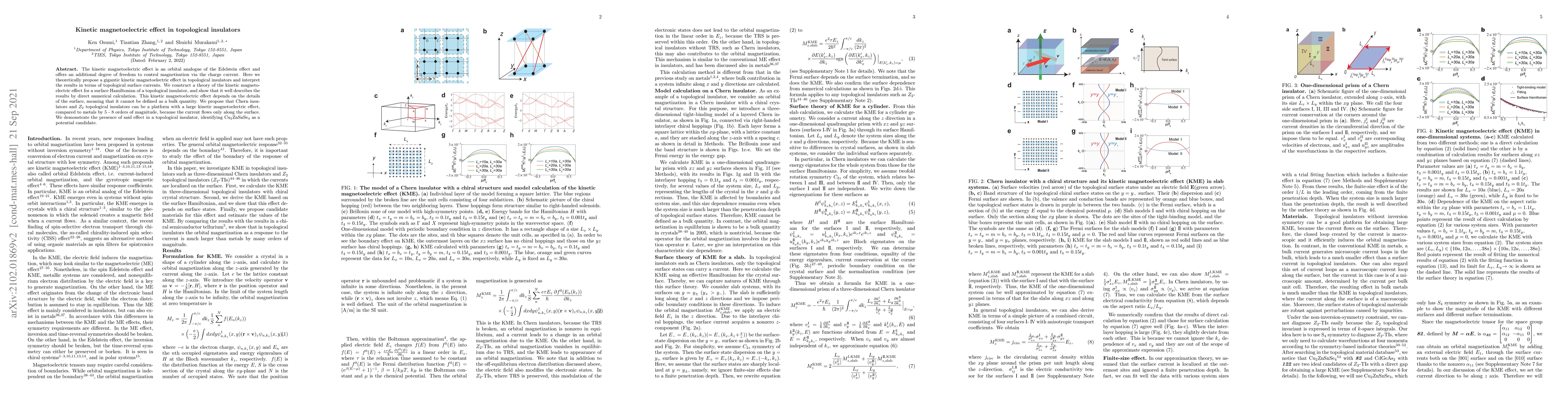 The research proposes a significant kinetic magnetoelectric effect in topological insulators, suggesting it is 5-8 orders of magnitude larger than in metals due to surface currents. The effect is theoretically modeled and demonstrated in Cu$_2$ZnSnSe$_4$, identifying it as a potential candidate material.