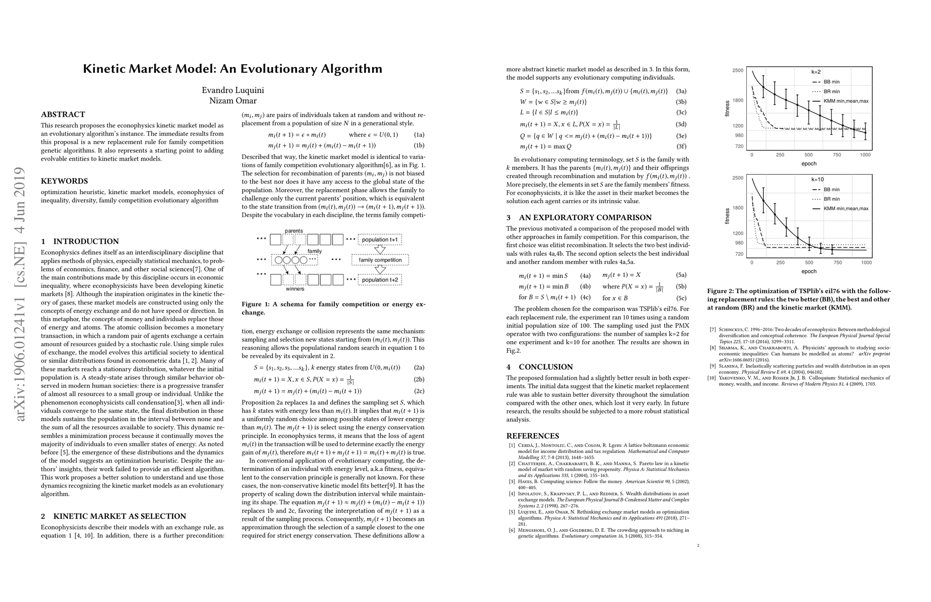 This research proposes the econophysics kinetic market model as an evolutionary algorithm's instance. The immediate results from this proposal is a new replacement rule for family competition genetic algorithms. It also represents a starting point to adding evolvable entities to kinetic market models.