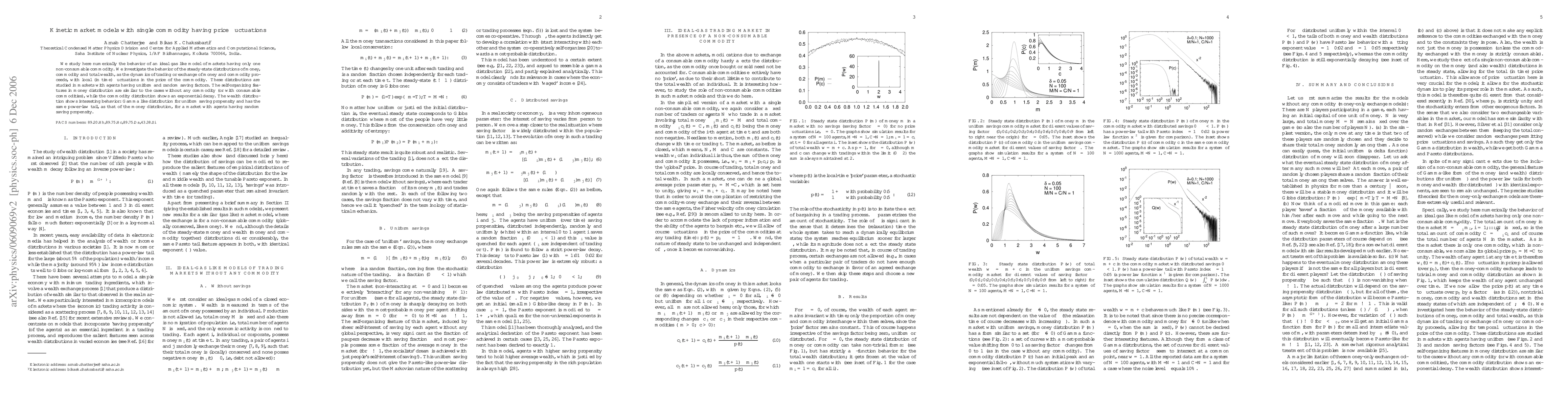 This study examines how market fluctuations affect wealth distribution in a single-commodity economy with price volatility. It finds that the distribution of money and total wealth follow similar patterns, while commodity distribution decays exponentially.