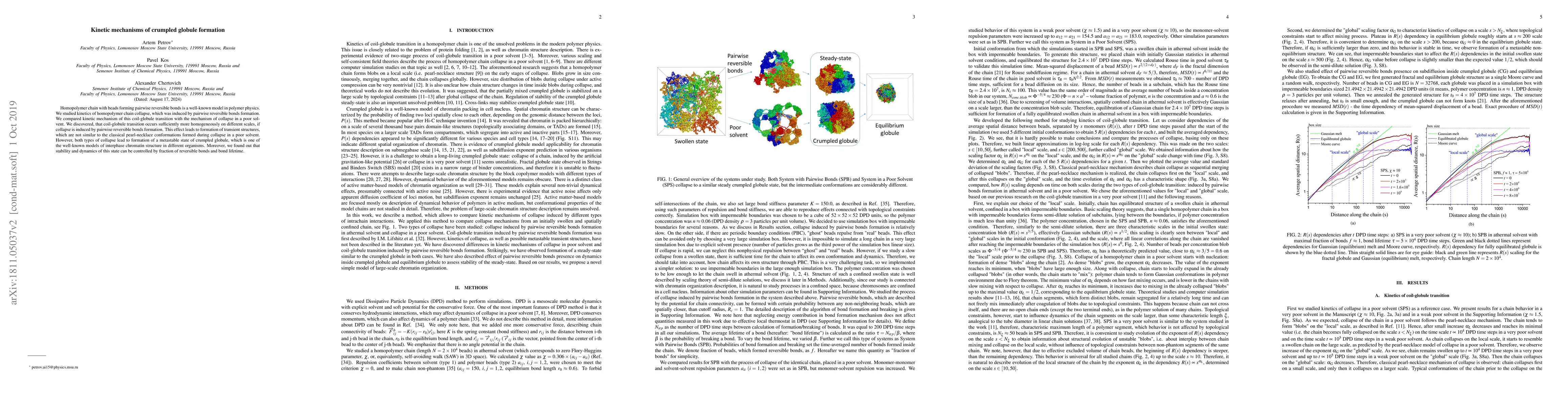 Homopolymer chain with beads forming pairwise reversible bonds is a well-known model in polymer physics. We studied kinetics of homopolymer chain collapse, which was induced by pairwise reversible bonds formation. We compared kinetic mechanism of this coil-globule transition with the mechanism of collapse in a poor solvent. We discovered, that coil-globule transition occurs sufficiently more homogeneously on different scales, if collapse is induced by pairwise reversible bonds formation. This effect leads to formation of transient structures, which are not similar to the classical pearl-necklace conformations formed during collapse in a poor solvent. However, both types of collapse lead to formation of a metastable state of crumpled globule, which is one of the well-known models of interphase chromatin structure in different organisms. Moreover, we found out that stability and dynamics of this state can be controlled by fraction of reversible bonds and bond lifetime.