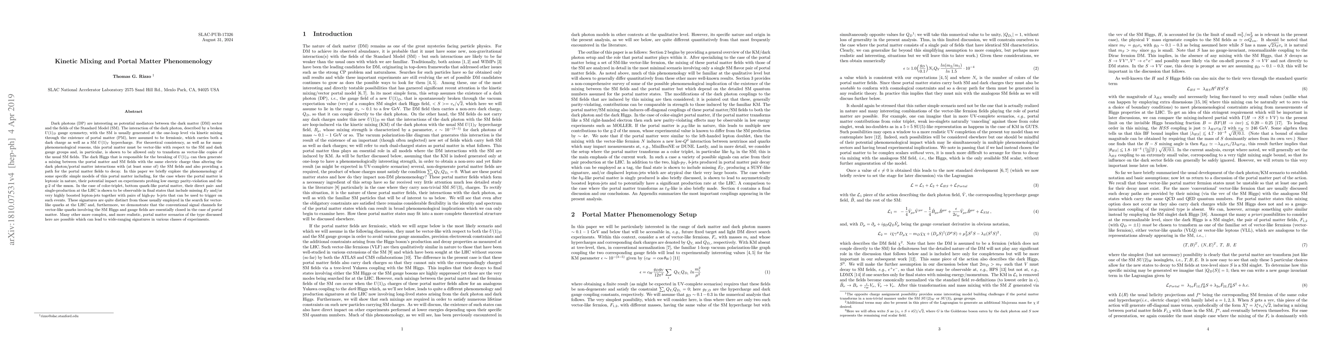 This paper explores the phenomenology of dark photons as mediators between dark matter and the Standard Model, focusing on kinetic mixing through portal matter. It examines specific models of vector-like portal matter, highlighting their potential observable signatures at the LHC and their impact on low-energy experiments.