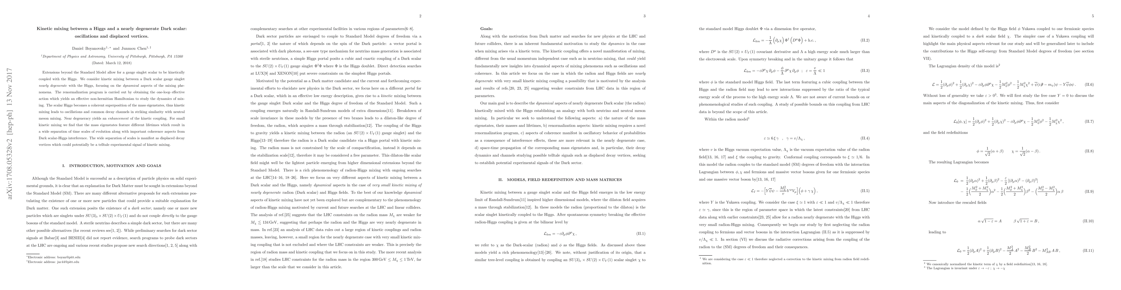 This paper investigates kinetic mixing between a nearly degenerate dark scalar and the Higgs boson, revealing dynamical phenomena such as oscillations and displaced decay vertices due to the coherent superposition of mass eigenstates. The study highlights the enhanced kinetic coupling and different lifetimes of mass eigenstates, leading to potential experimental signatures.
