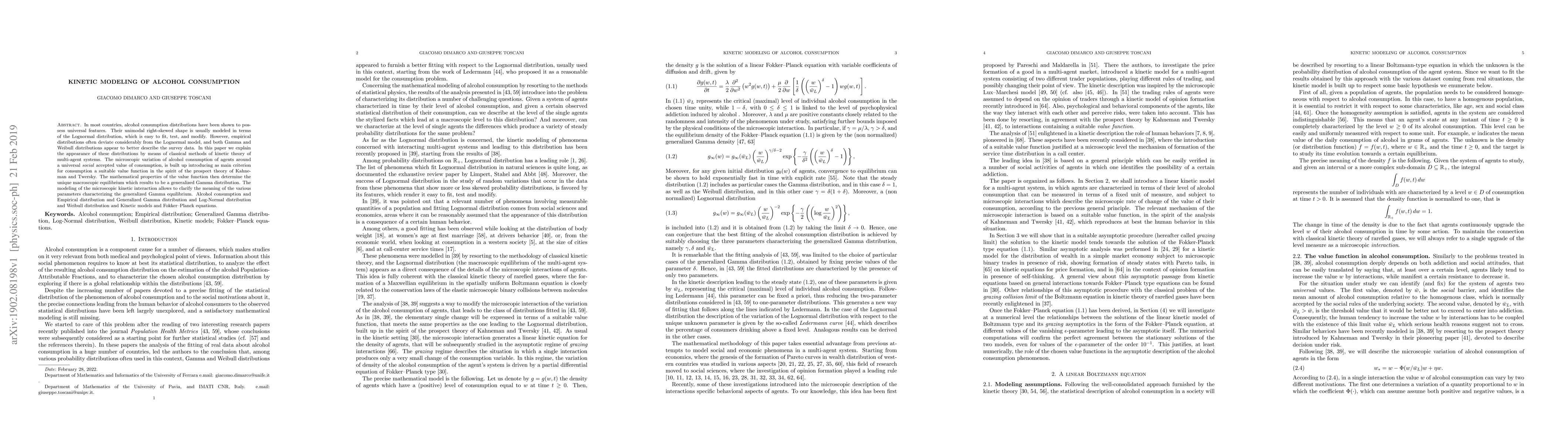 Researchers used kinetic modeling to explain why alcohol consumption data deviates from the Lognormal distribution, instead finding a generalized Gamma distribution that better fits the data. This new model offers insights into the microscopic interactions driving drinking behavior.