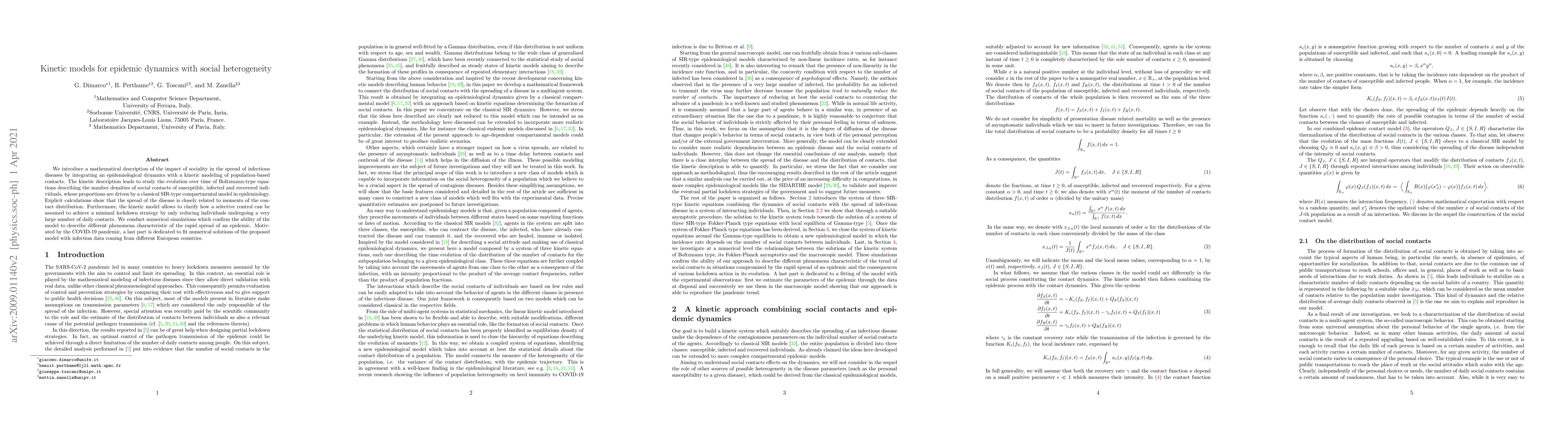 This paper develops a kinetic model integrating epidemiological dynamics with social heterogeneity to study the spread of infectious diseases. The model uses Boltzmann-type equations to describe the evolution of social contacts among susceptible, infected, and recovered individuals, revealing that disease spread is linked to contact distribution moments. The model also demonstrates how targeted control can minimize lockdowns by focusing on individuals with high contact rates. Numerical simulations validate the model's ability to capture epidemic phenomena, and it is applied to COVID-19 data from various European countries.
