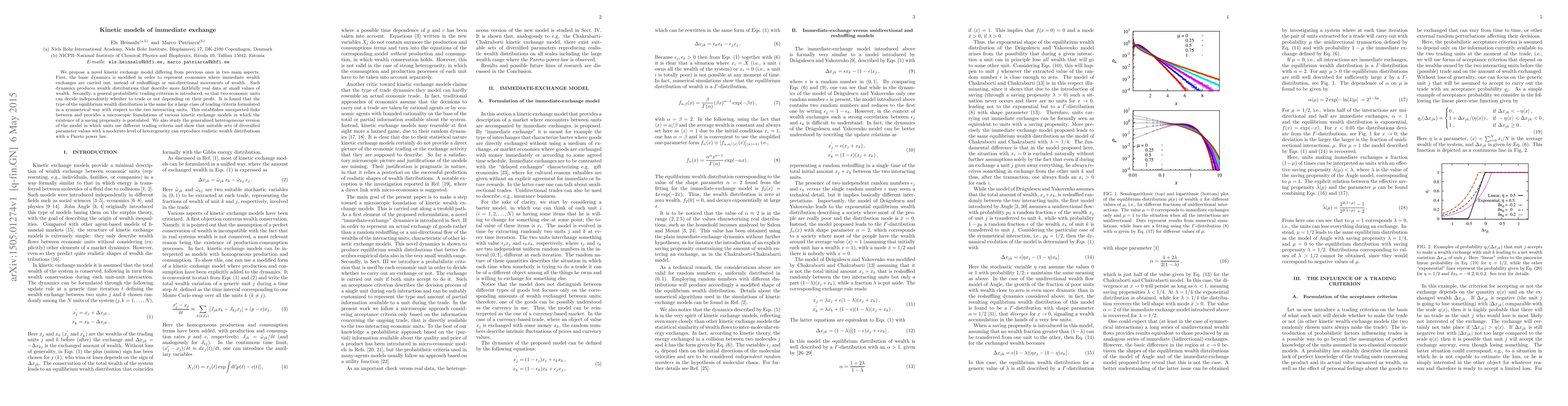 This paper introduces a novel kinetic exchange model focusing on immediate wealth exchanges, modifying basic dynamics to better reflect real economic data. It also introduces a general probabilistic trading criterion, establishing links between various kinetic exchange models and providing microscopic foundations for those assuming a saving propensity.