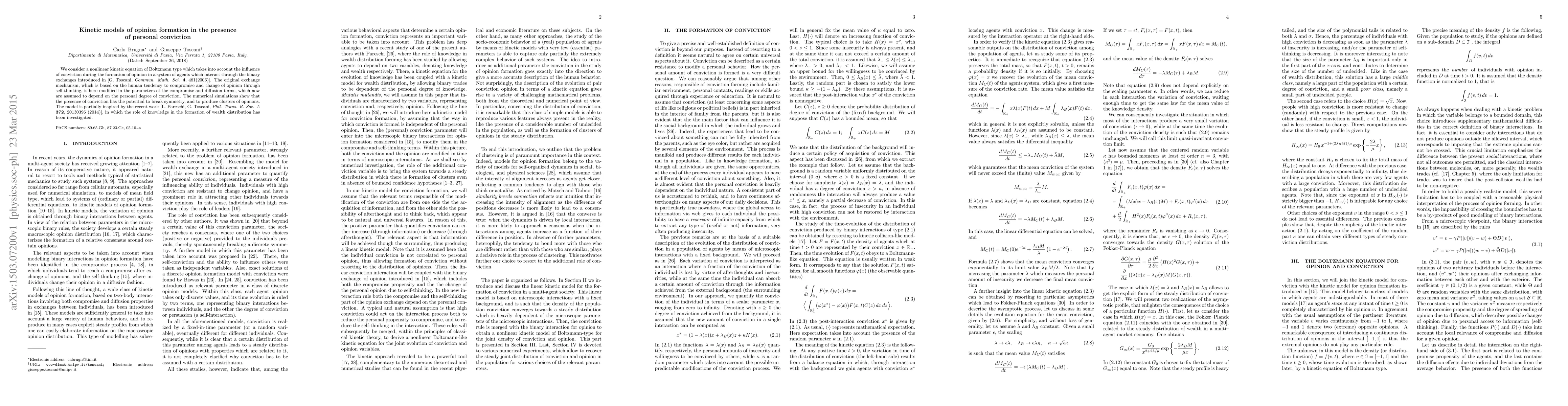 This paper develops a nonlinear kinetic model to study opinion formation influenced by personal conviction, modifying the exchange mechanism to depend on conviction levels. Numerical simulations reveal that conviction can break symmetry and create opinion clusters.
